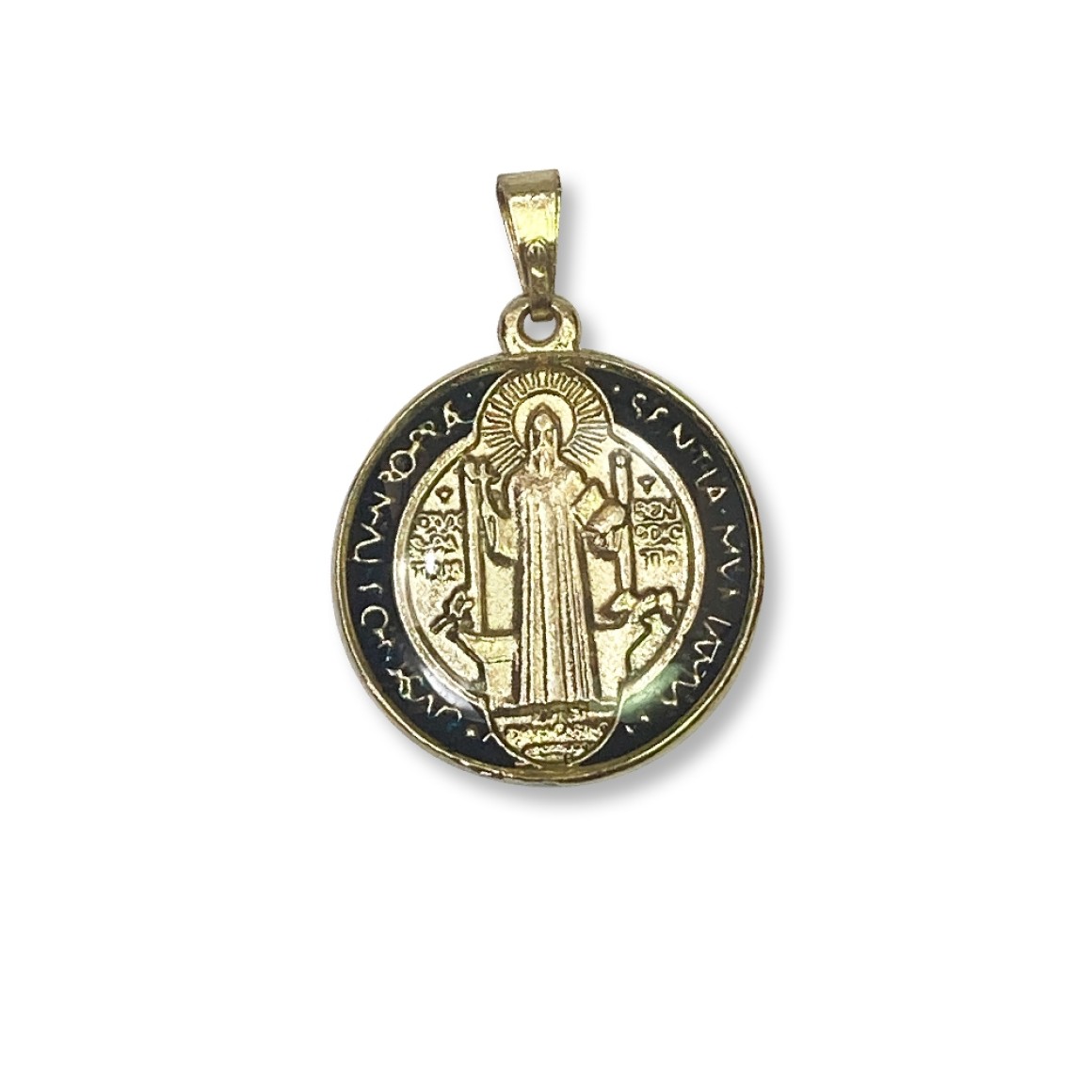 MD1420100 - Medalha São Bento Resinada Redonda Dourada - 3x2,5cm
