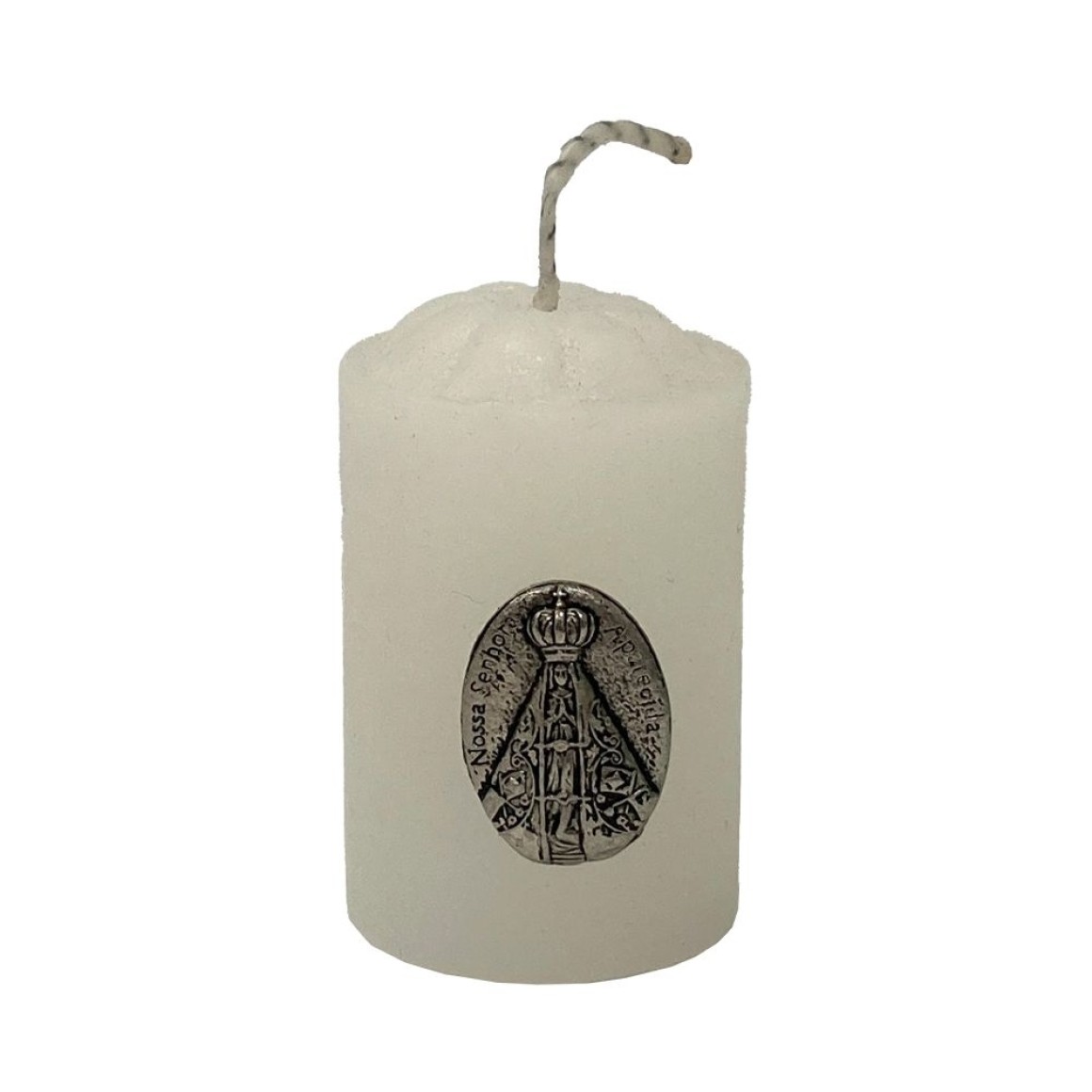 VE750000 - Vela N. Sra. Aparecida c/ Pingente Níquel Envelhecido - 6x4cm