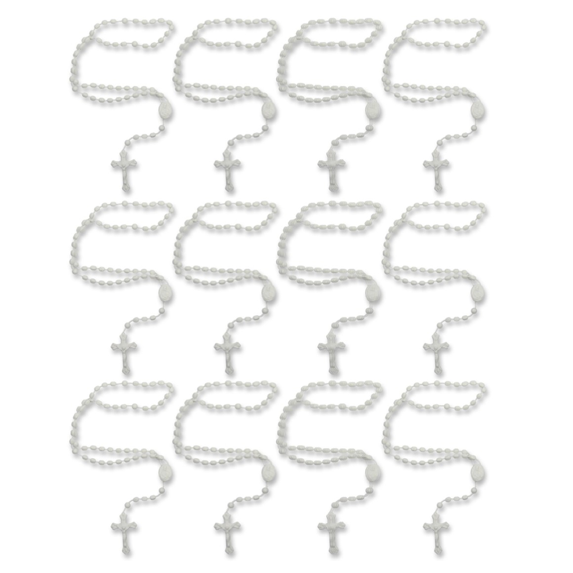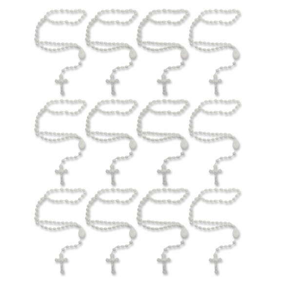 *Terço Acrílico Branco c/ 12un. - 32cm.