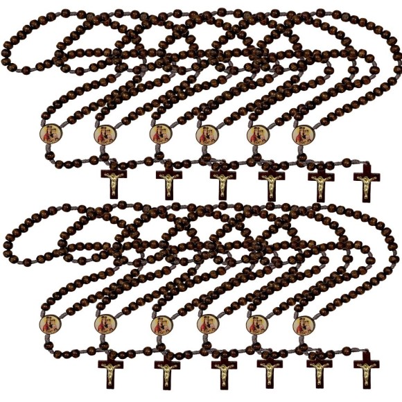TE940175P12 - Terço N. Sra da Saúde Madeira c/ 12un. - 37cm
