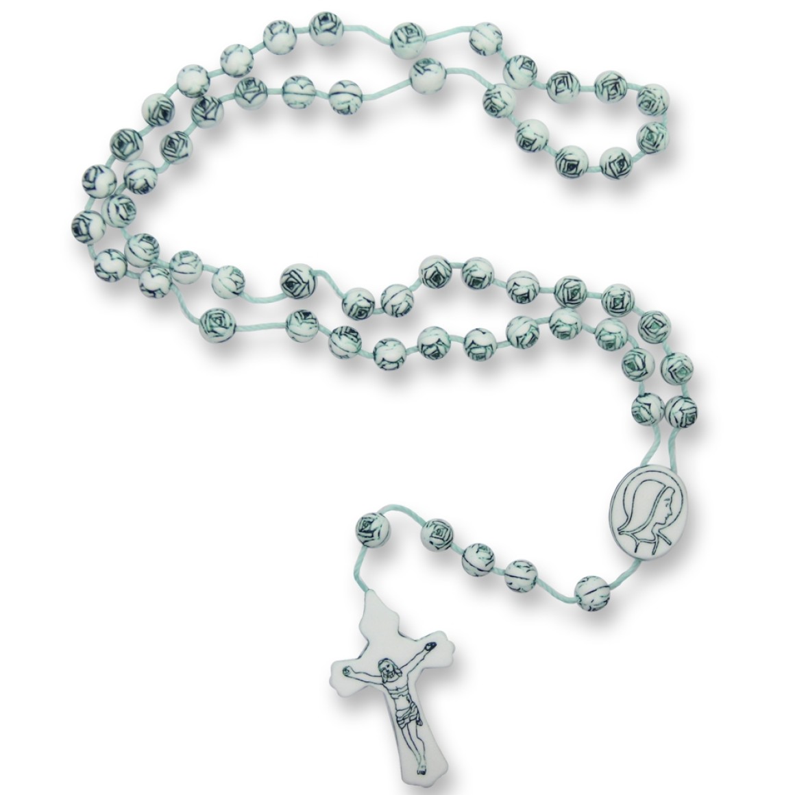 *O TERÇO DE ACRILICO contém contas de Rosas envelhecidas nº 6 e fio de nylon;