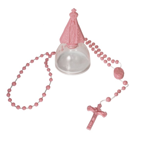 TE050652 - Cúpula N. Sra. Aparecida c/ Terço de Acrílico Rosa - Cúpula 8x4cm Terço 31cm