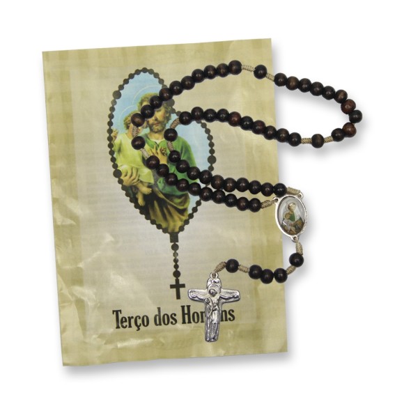 *Terço com contas de Madeira Imbuia n°8 e Entremeio Resinado.
