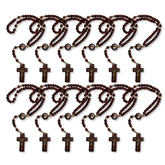 TE941020P12 - Terço Santa Rita de Cássia Madeira c/ 12un. - 24cm