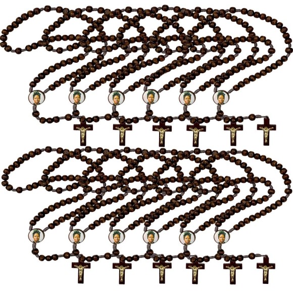 TE940350P12 - Terço Santa Josefina Bakhita Madeira c/ 12un. - 37cm