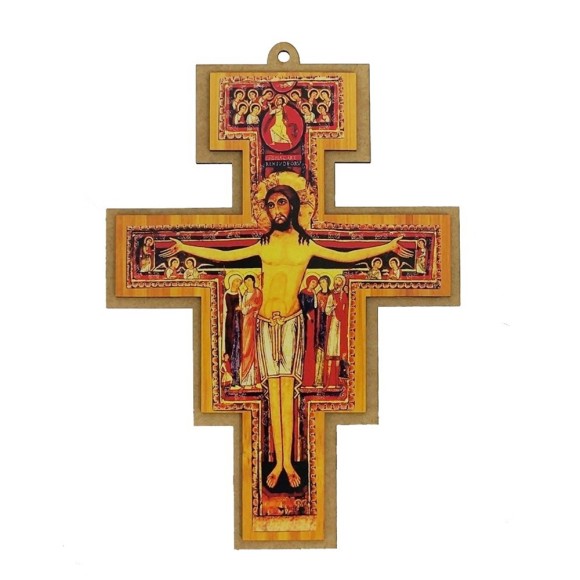 2. CW810155 - Crucifixo de Parede São Damião Pingente MDF - 23x16cm