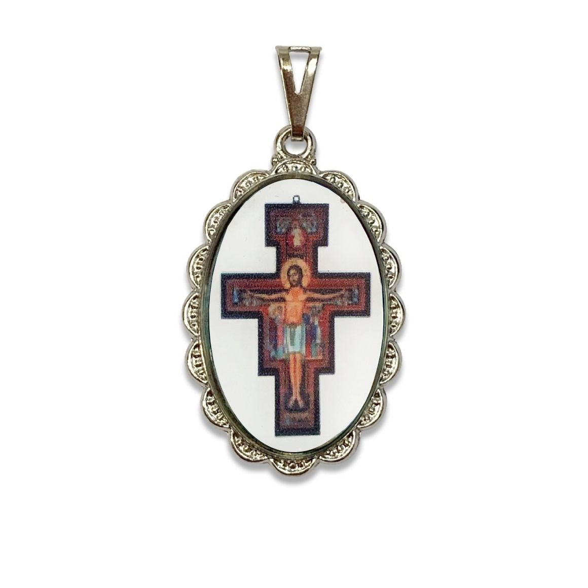 *Medalha Cruz de São Damião Rendada Níquel - 5x2,5cm.