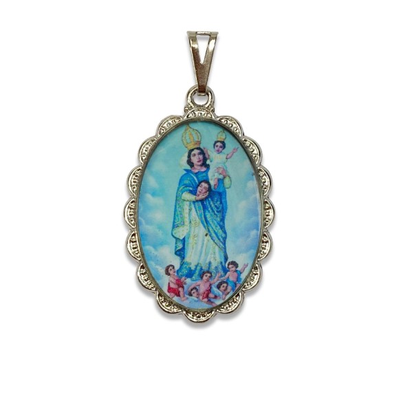 *Medalha N. Sra. Da Cabeça Rendada Níquel - 4,1x2,6cm.