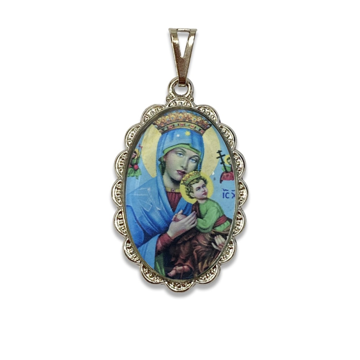 *Medalha N. Sra. do Perpétuo Socorro Rendada Níquel - 4,2x2,5cm.