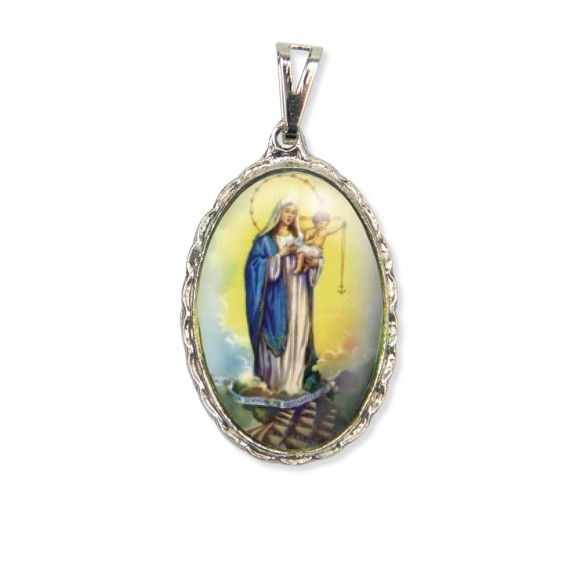 MD128046 - Medalha N. Sra. Dos Navegantes Rendada Níquel - 5x2,5cm