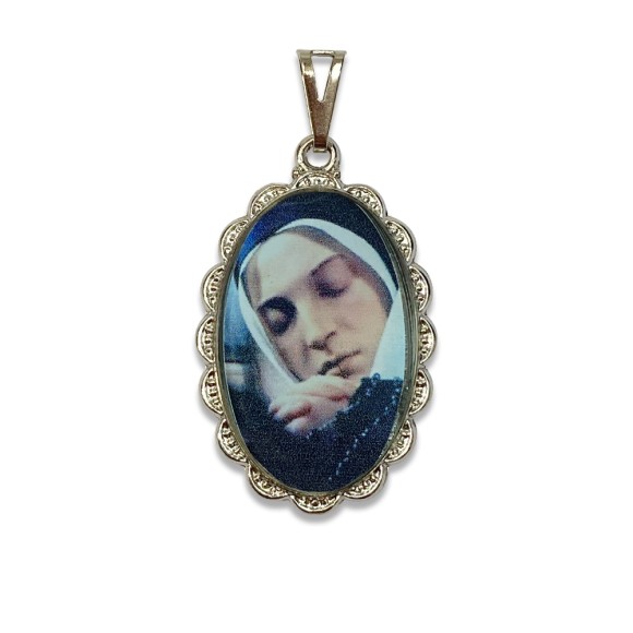 *Medalha Santa Bernadette Rendada Níquel - 4,2x2,5cm.
