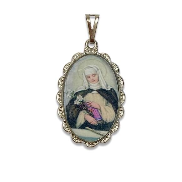 MD128058 - Medalha Santa Catarina de Siena Rendada Níquel - 4,1x2,6cm