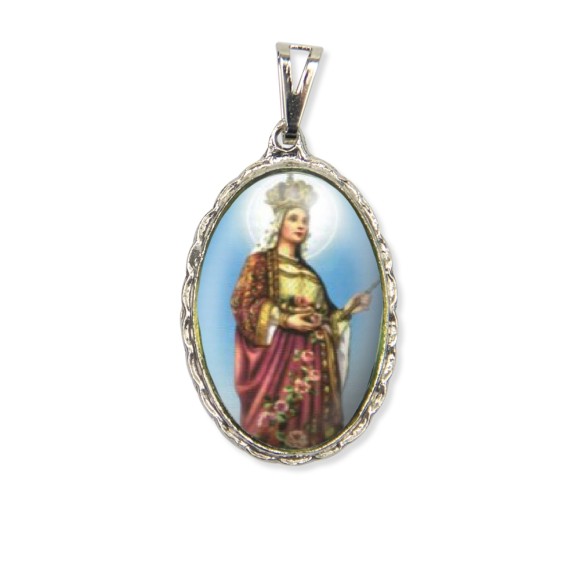 MD128067 - Medalha Santa Isabel da Hungria Rendada Níquel - 5x2,5cm