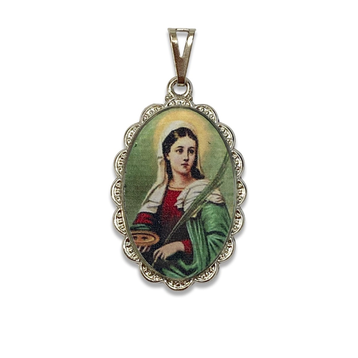 *Medalha Santa Luzia Rendada Níquel - 4,2x2,5cm.