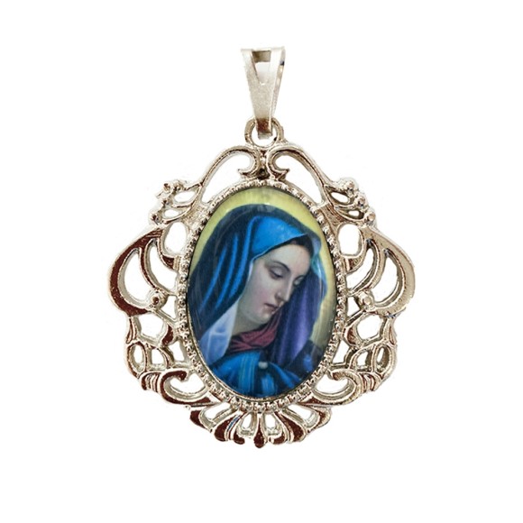 MD129020 - Medalha N. Sra. das Dores Camafeu Níquel - 4,5x4cm