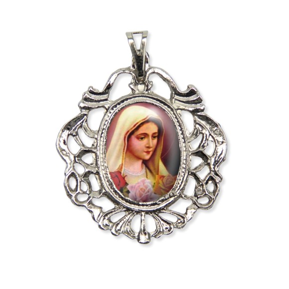 *Medalha N. Sra. Rosa Mística Camafeu Níquel - 5x4,2cm.