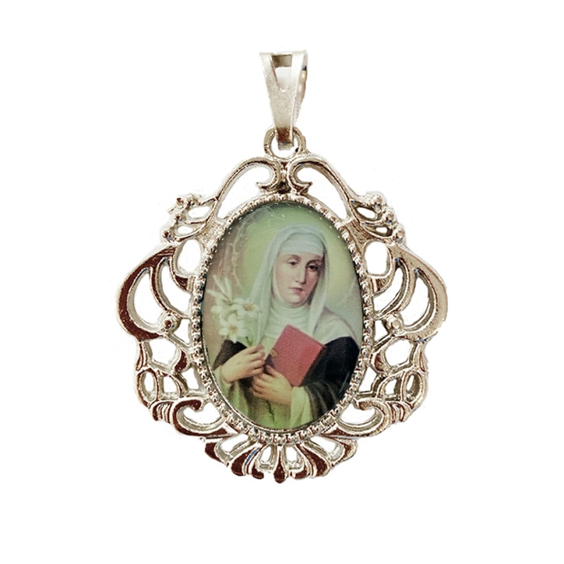 MD129053 - Medalha Santa Catarina de Siena Camafeu Níquel - 4,5x4cm