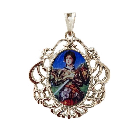 MD129064 - Medalha Santa Joana D'Arc Camafeu Níquel - 4,5x4cm