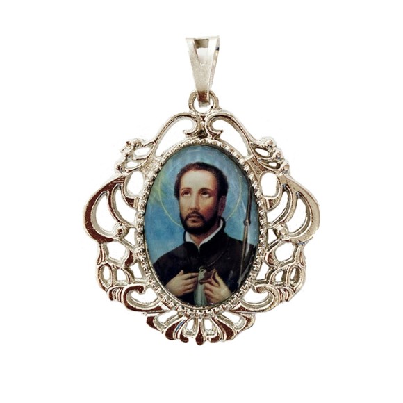 MD129428 - Medalha São Francisco Xavier Camafeu Níquel - 4,5x4cm