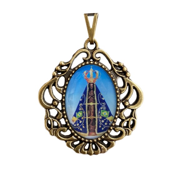*Medalha N. Sra. Aparecida Camafeu Ouro Velho - 4,5x4cm.