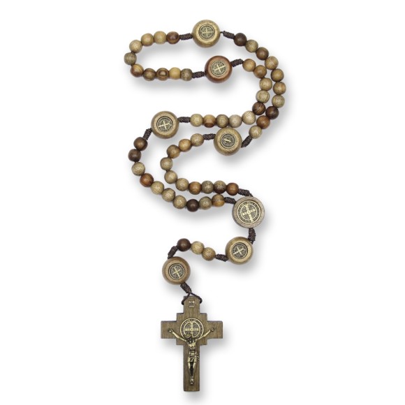 *Terço São Bento Madeira Marrom - 54cm.