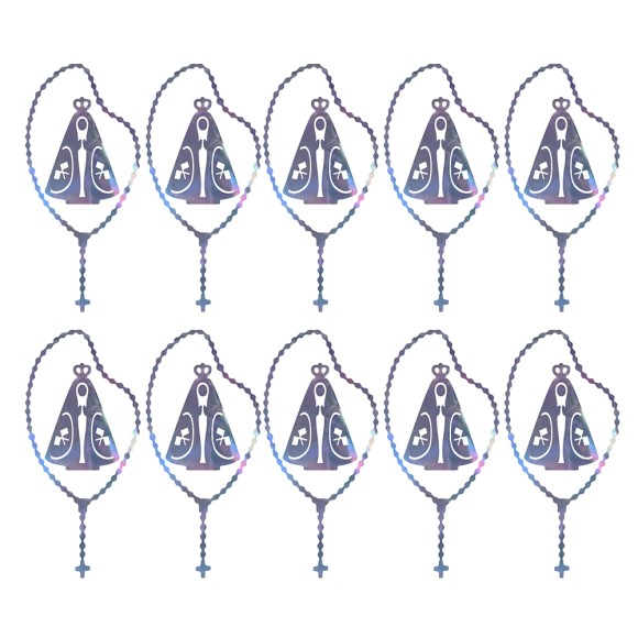 *Adesivo Terço N. Sra. Aparecida c/ 10 unid. Prata - 8,5x4cm.