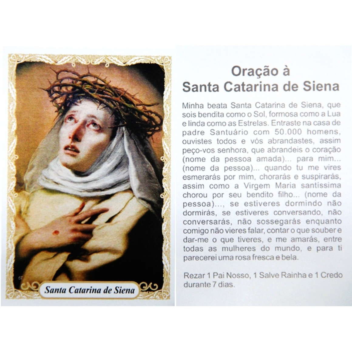 *Oração Santa Catarina de Siena c/ 100un. - 9,5x6,5cm.