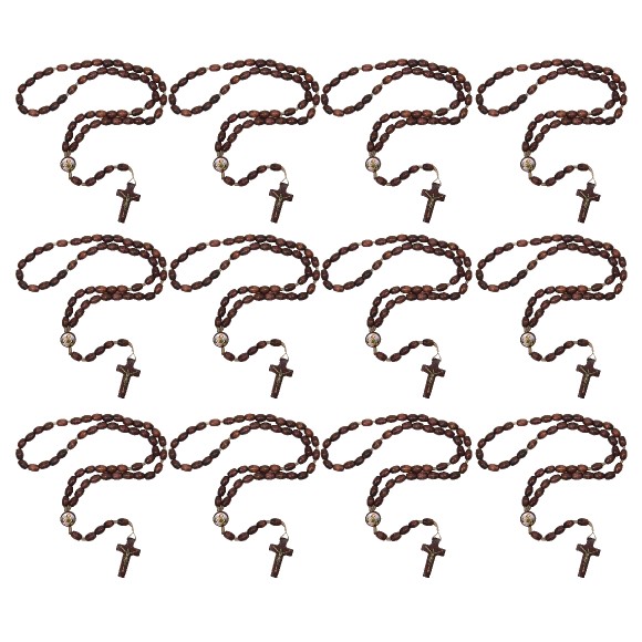 TE942404P12 - Terço São José Madeira c/ 12un. - 44cm