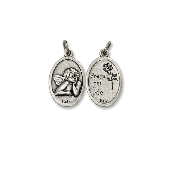 *Medalha Anjinho Pensador Italiana Oval Prateada c/ 2un. - 2,5x1,6cm.