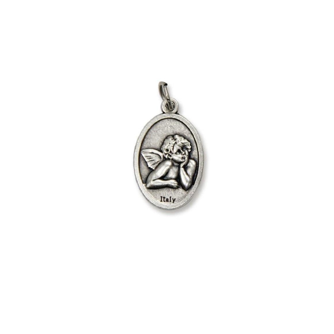 MD1180310P2 - Medalha Anjinho Pensador Italiana Oval Prateada c/ 2un. - 2,5x1,6cm