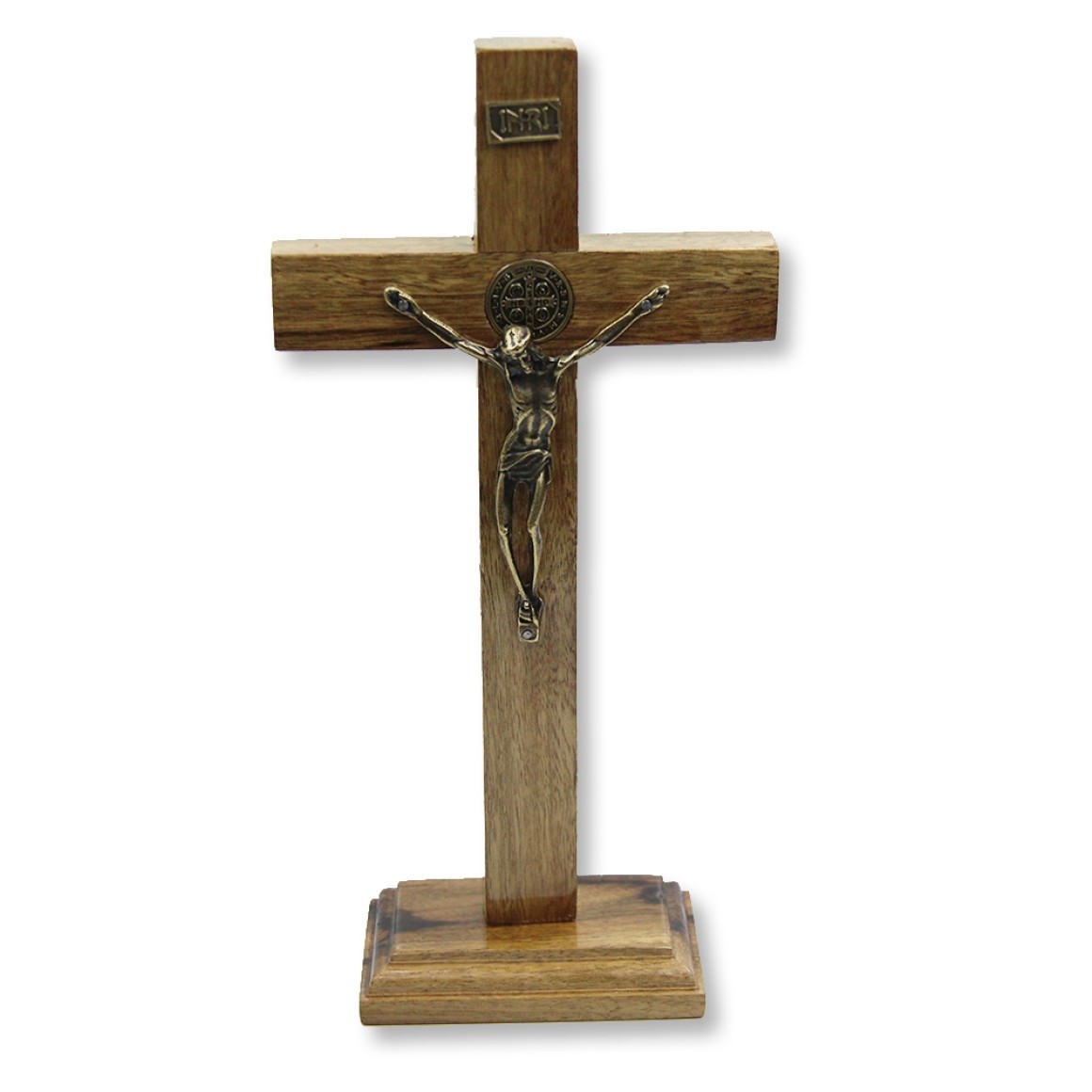 *Crucifixo de Mesa São Bento Madeira - 28x13,5cm (3139).
