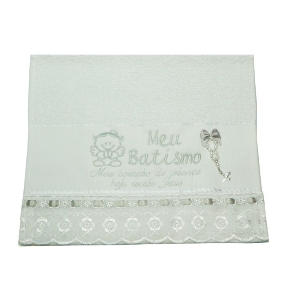 TO1422 - Toalha Batismo Prata c/ Dezena - 45x31cm
