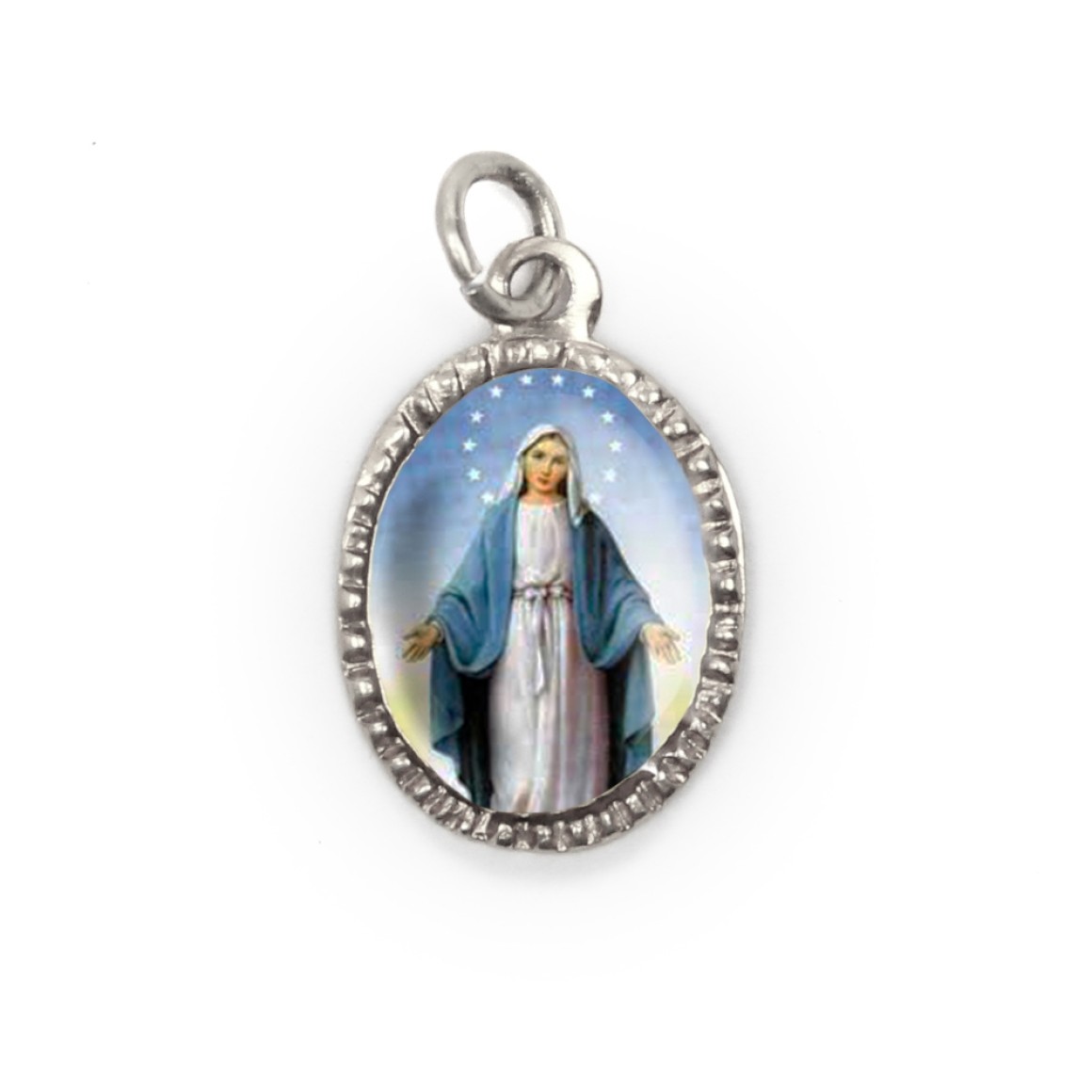 MD520037P10 - Medalha N. Sra. Das Graças Alumínio Oval Prata c/ 10un. - 2X1,3cm