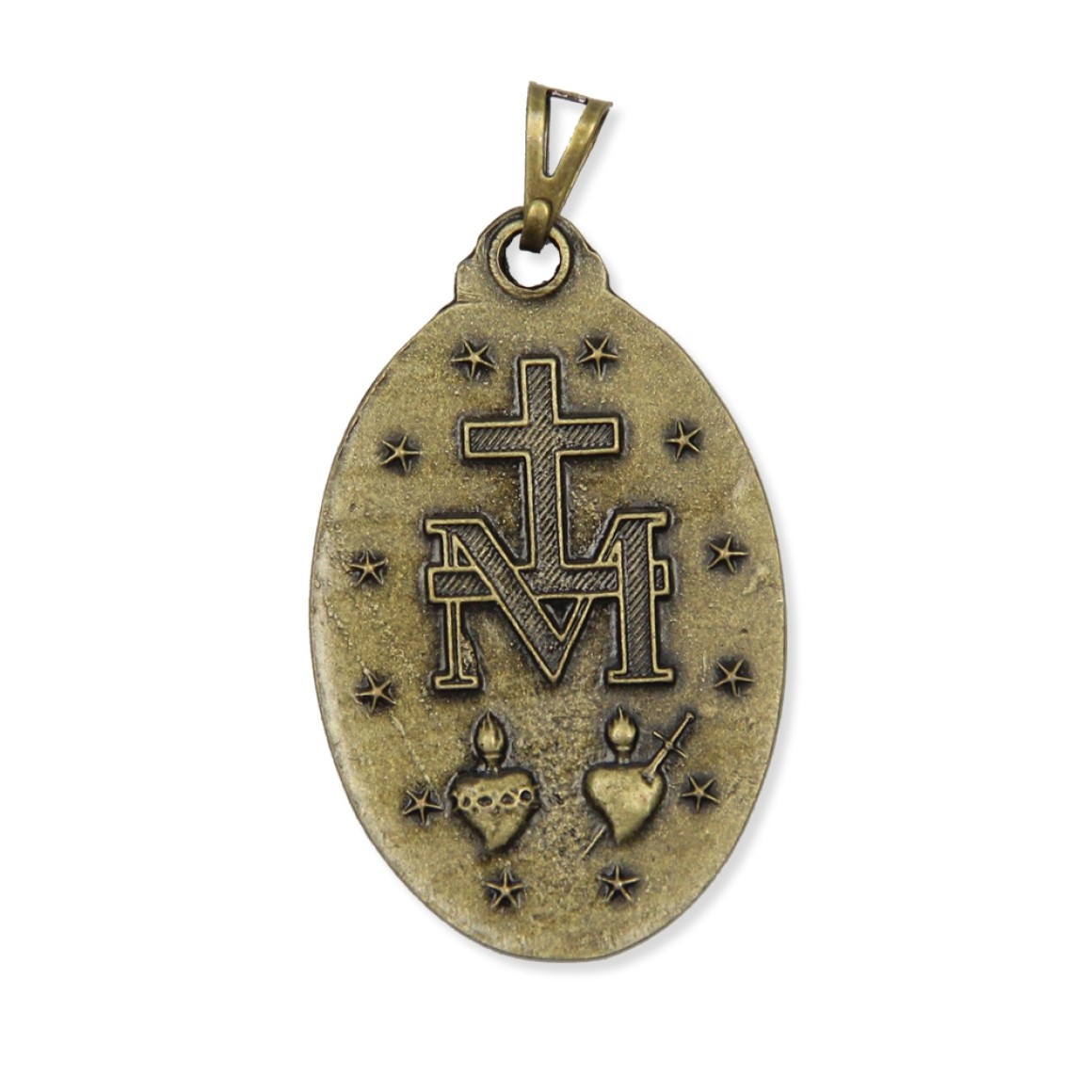 O origem da Medalha Milagrosa foi em 27 de novembro de 1830, Quando a Virgem Maria apareceu a noviça Catarina Labouré, na Capela das Irmãs da Caridade de São Vicente de Paulo, em Paris. A Santíssima Virgem surgiu sobre um globo, oferecendo-o a Deus em sinal de súplica, pisando uma serpente e segurando nas mãos um globo menor. Maria disse: “Este globo representa o mundo inteiro e, cada pessoa em particular”. De suas mãos saiam raios brilhantes de luz, formando um quadro oval, que continham as seguintes palavras: “Ó Maria concebida sem pecado, rogai por nós que recorremos a vós ”. No reverso do quadro havia um “M” sobre uma cruz e por baixo os corações de Jesus e de Maria. Nossa Senhora pediu à noviça que mandasse cunhar uma medalha igual ao modelo apresentado, fazendo-lhe a seguinte promessa: As pessoas que a usarem com fé e confiança receberão graças especiais”. E assim foi cunhada esta medalha, que logo se espalhou pelo mundo inteiro, operando graças tão numerosas e extraordinárias, que os fiéis passaram espontaneamente a chamá-la medalha milagrosa. Prática diária: Usar a medalha com confiança e devoção. Beijá-la de manhã e à noite dizendo : “Ó Maria concebida sem pecado, rogai por nós que recorremos a vós.