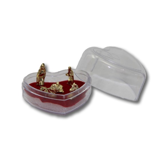 IM32011 - Mini Presépio Metal Dourado Na Caixinha De Acrílico- 4,5x4,5cm