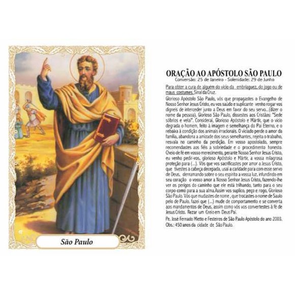 *Oração São Paulo c/ 100un. - 9,5x6,5cm.