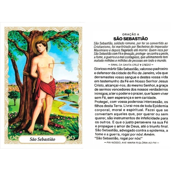 *Oração São Sebastião c/ 100un. - 9,5x6,5cm.