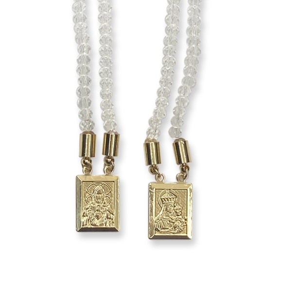 ES350300 - Escapulário N. Sra. do Carmo e Sagagrado Coração de Jesus Cristal Transparente - 70x1,4cm