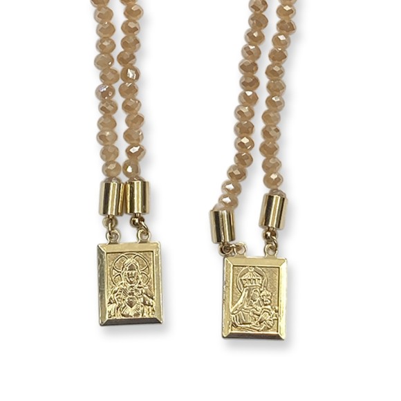 ES350303 - Escapulário N. Sra. do Carmo e Sagrado Coração de Jesus Cristal Nude - 70x1,4cm