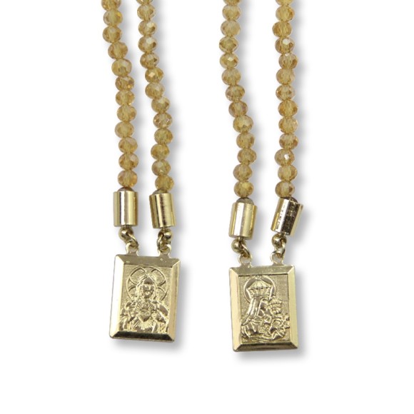 ES350302 - Escapulário N. Sra. do Carmo e Sagrado Coração de Jesus Cristal Ambar - 70x1,4cm