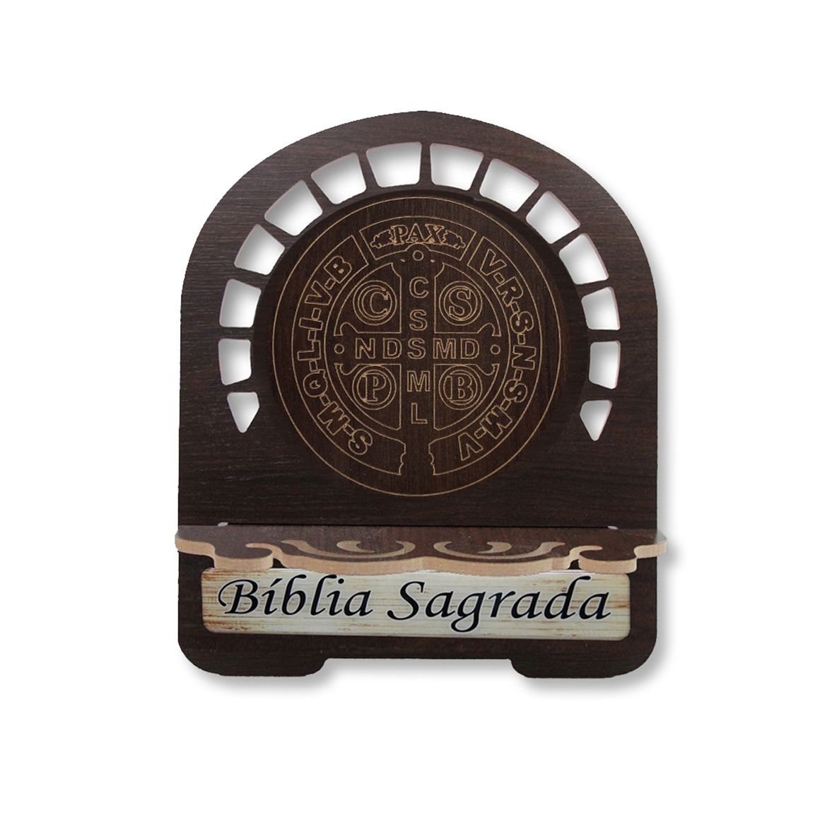 *Porta Bíblia Medalha de São Bento MDF Resinado - 22x17,5cm.