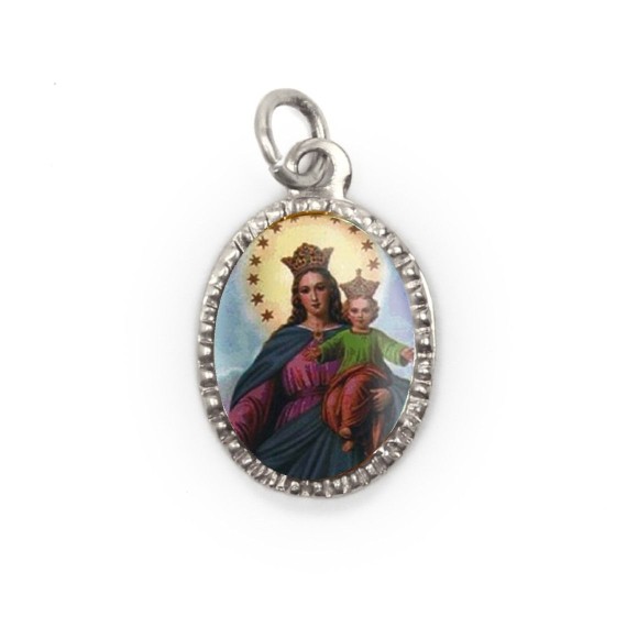 MD103603P10 - Medalha de Alumínio Oval Prata c/ 10un. N. Sra. Auxiliadora - 2X1,3cm