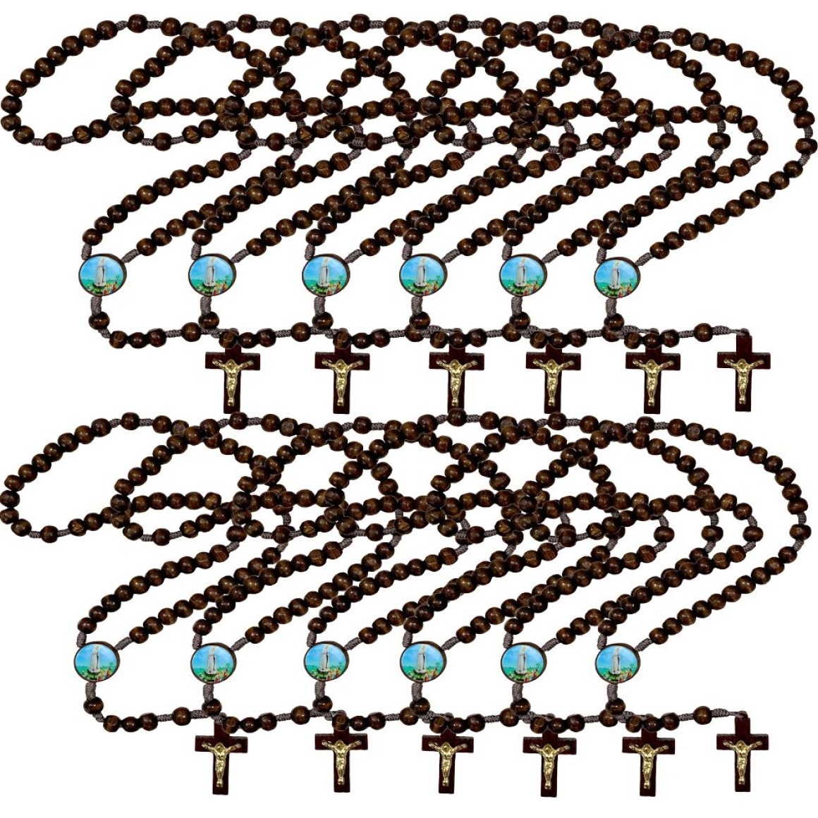 TE940017P12 - Terço N. Sra. De Fátima Madeira c/ 12un. - 37cm
