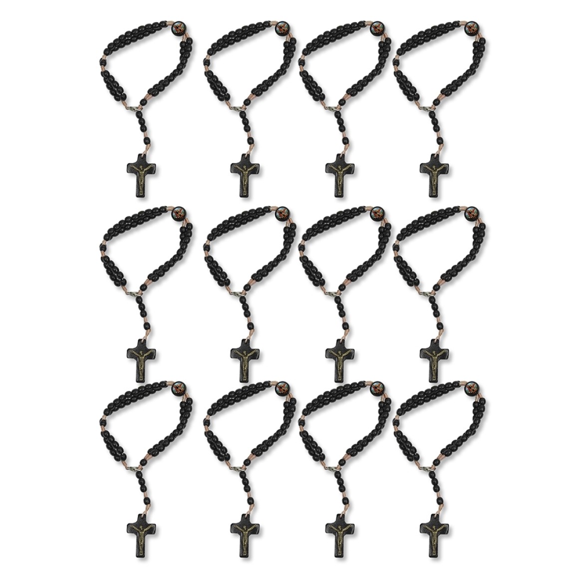 PU1543700P12 - Pulseira Terço São Miguel Arcanjo Madeira c/ 12un. - 22x1,8cm