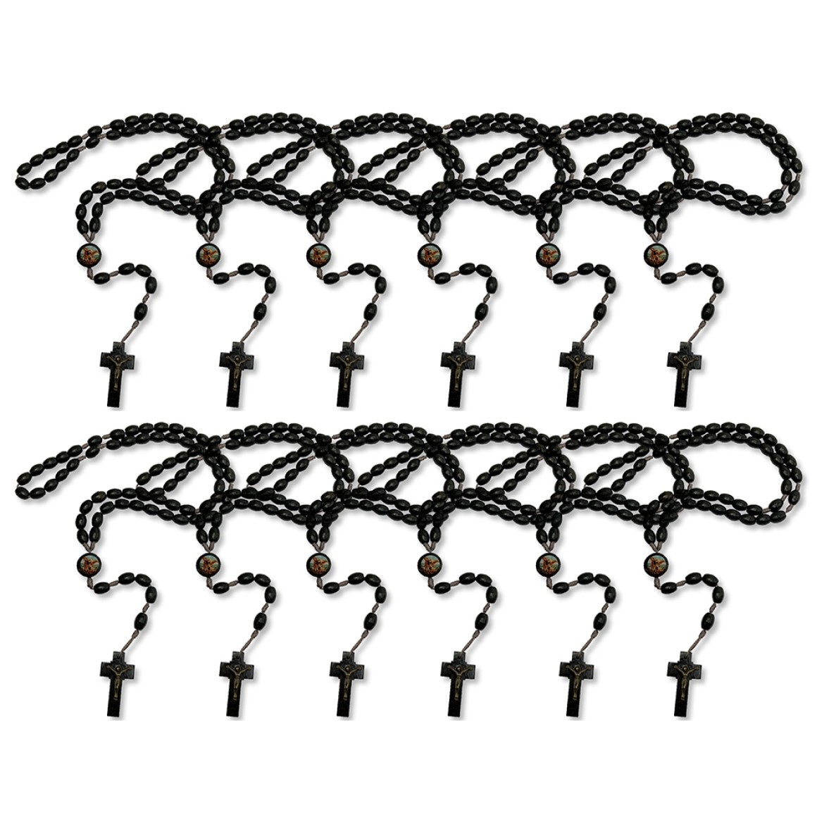 TE330082P12 - Terço São Miguel Arcanjo Madeira c/ 12un. - 45cm