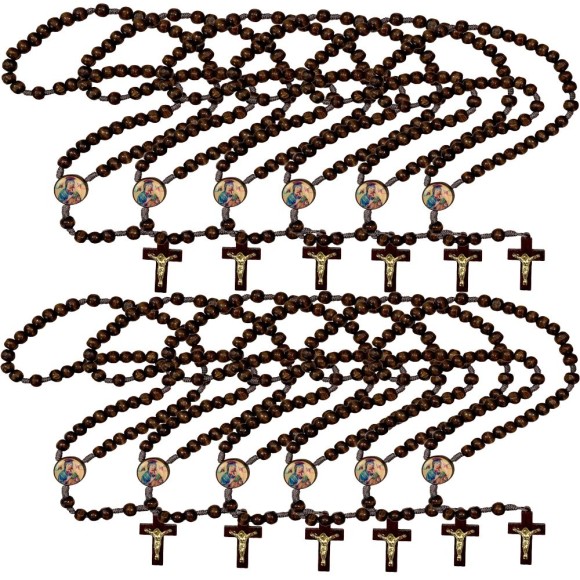 TE940080P12 - Terço N. Sra. Do Perpetuo Socorro Madeira c/ 12un - 37cm