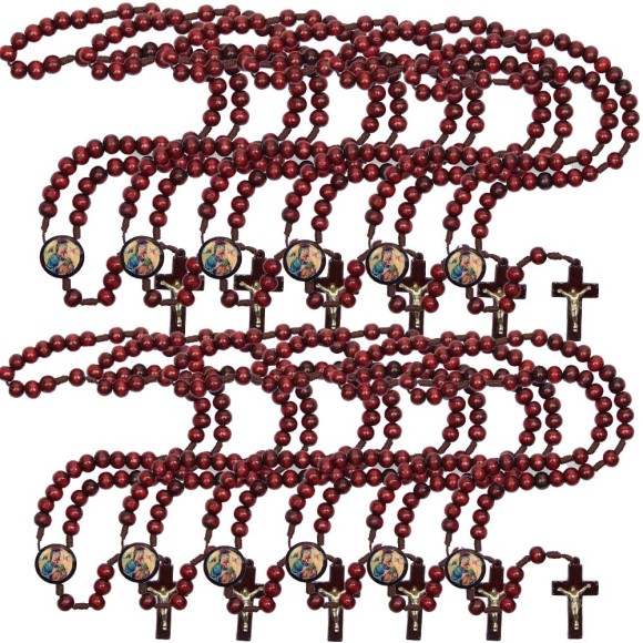 TE940081P12 - Terço N. Sra. Do Perpetuo Socorro Madeira c/ 12un - 37cm