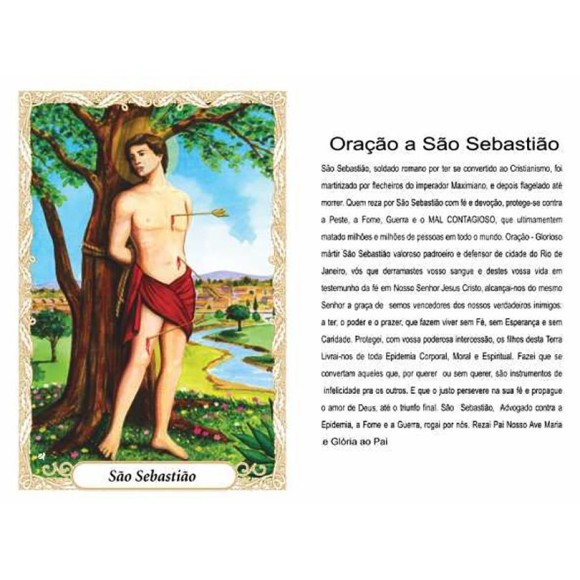 *Oração São Sebastião c/ 100un. - 6x4cm.