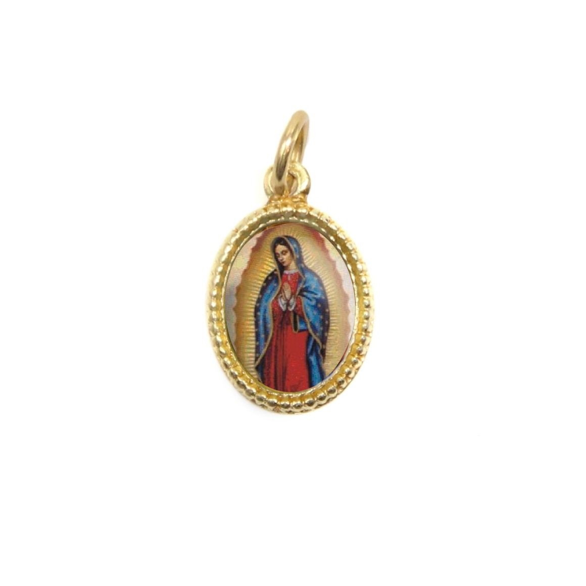 MD102012P20- Medalha de Alumínio Oval Dourada c/ 20un. N. Sra. De Guadalupe - 1,5x1cm