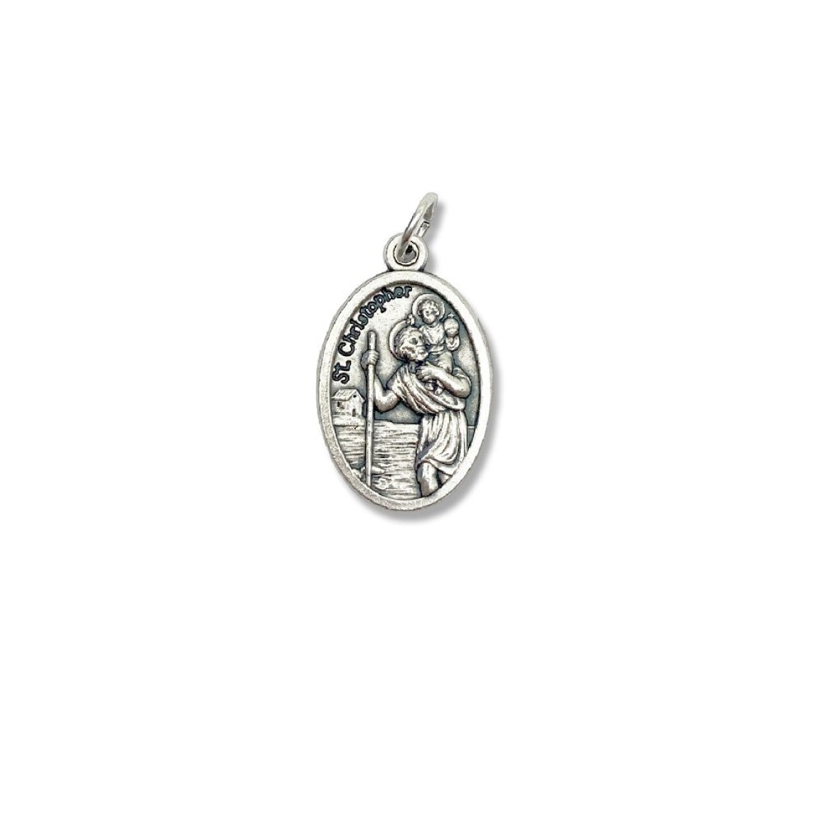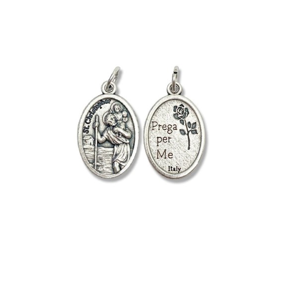 MD1180210P2 - Medalha São Cristóvão Italiana Oval Prateada c/ 2un. - 2,5x1,7cm